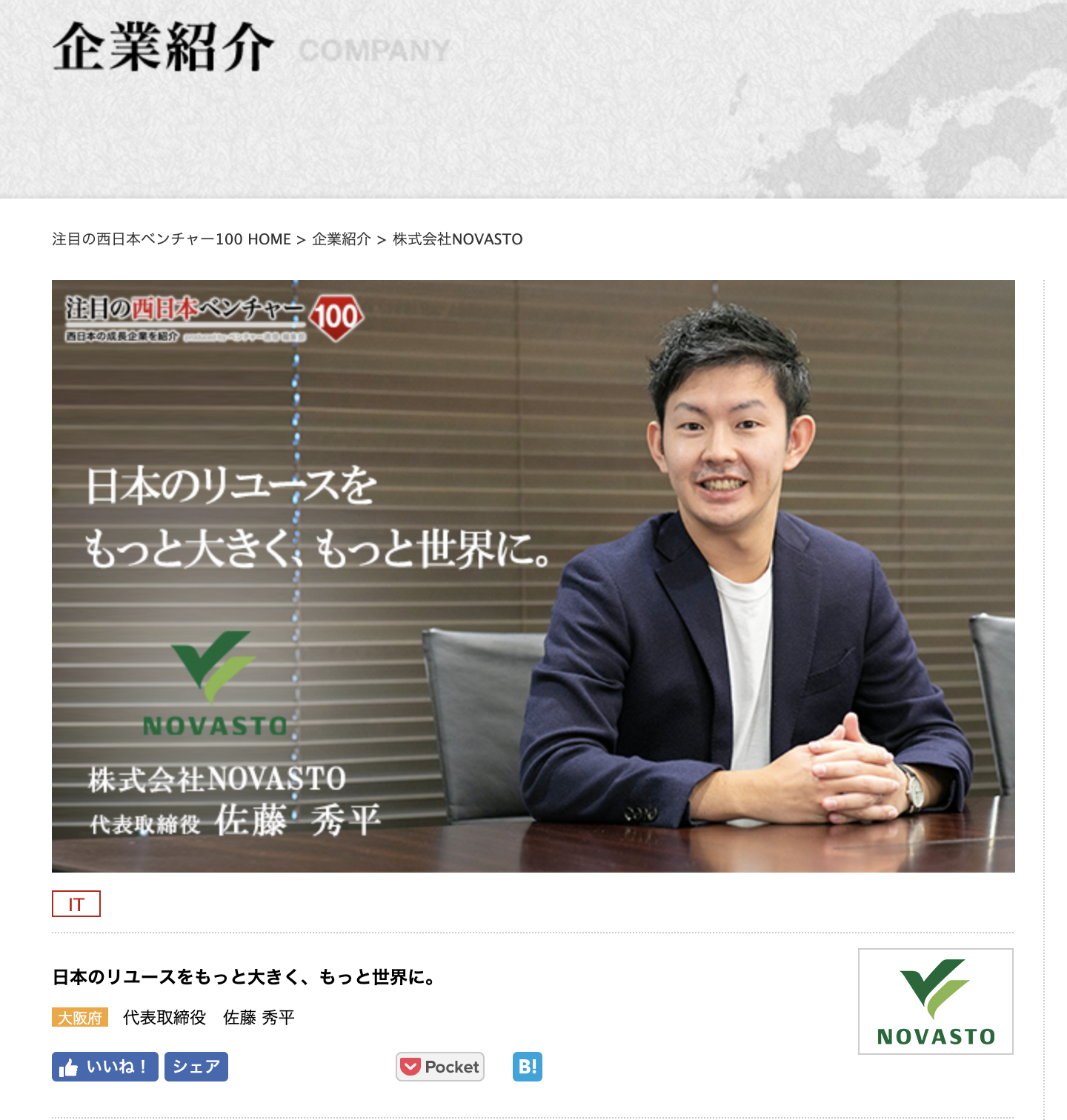 この度、「注目の西日本ベンチャー100」という、西日本のベンチャー企業にスポットを当てたwebメディアに、弊社を掲載いただきました。
